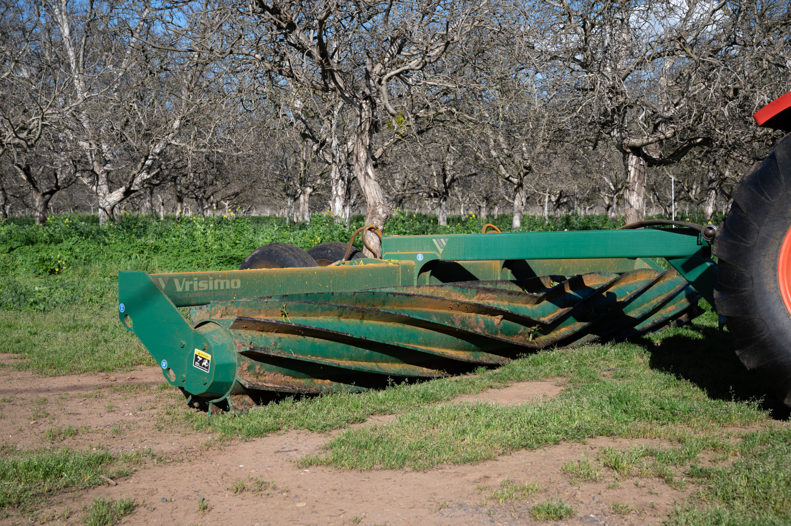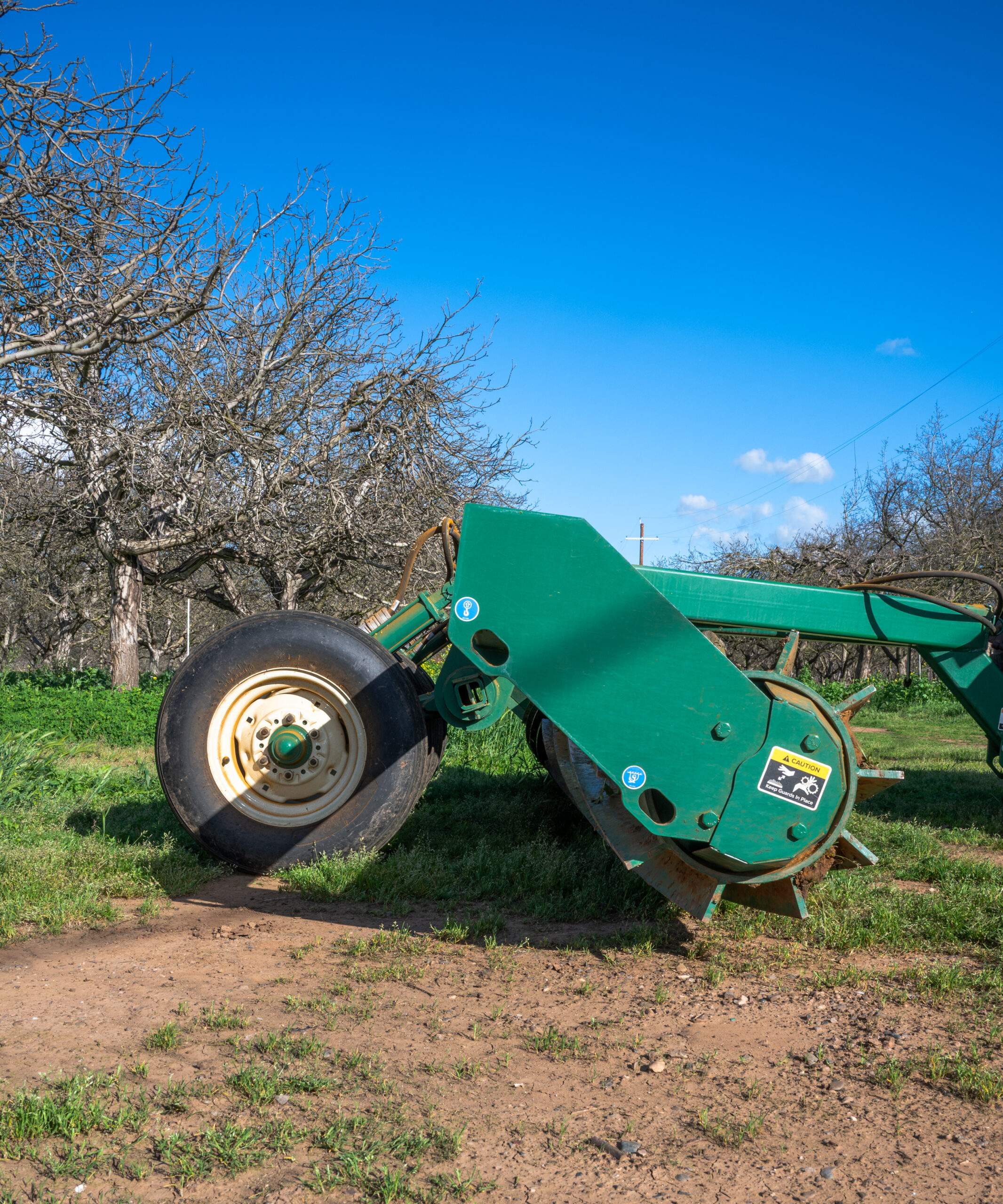 The CR-180 is a 15-foot cover crop crimper designed for heavy duty use in orchards and row-crops. The low-profile frame acts like a trailer for easy transportation and tight turns at end of row. This tool is used in late spring to terminate a cover crop and provide nutrients to the soil while preventing growth of weeds through the growing months. A rear hitch allows connection of a sprayer for single pass spring management.